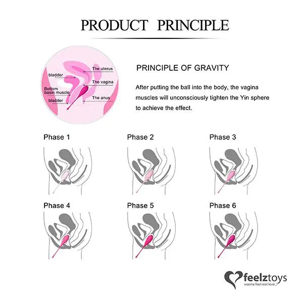 De vaginale training set versterkt de bekkenbodemspieren en kan gebruikt worden door zowel beginners als gevorderden door de verschillende gewichten in de set. Begin met het lichtst gekleurde gewicht en gebruik indien gewenst een glijmiddel op waterbasis voor meer comfort tijdens het inbrengen.