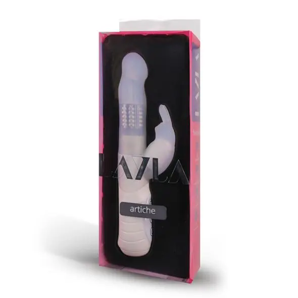 Slanke roterende vibrator met 7 functies en rabbit clitstimulator en draaiende metalen kralen.