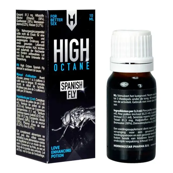High Octane Spaanse Vlieg 10 ml is een populair Afrodisiacum dat als liefdesdrank de persoon die het inneemt grote seksuele potentie geeft. Spaanse Vlieg is alleen voor ondeugende vrouwen en mannen die nog een beetje stouter willen worden.