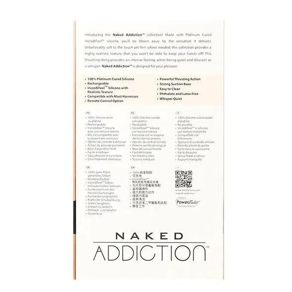 Deze Naked Addiction Stotende Dildo met Afstandsbediening 16,5 cm haalt alle kracht uit de 9,5 inch en verpakt deze in een penis van perfect formaat. Maar onderschat deze bescheiden dildo niet! Onder die realistische look en feel zit alle kracht waar Naked Addiction bekend om staat om je te helpen die teenkrullende orgasmes te bereiken! Je moet voelen om de kracht te geloven die in elke stoot zit, maar zelfs met al die ongelooflijke kracht hoor je nauwelijks iets. De enige harde geluiden komen van jou.