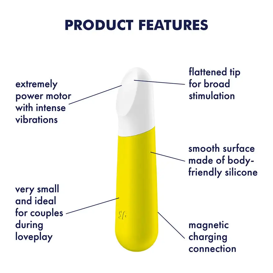 De Satisfyer Ultra Bullet 4 Mini Vibrator Geel is met zijn lichaam van zachte, hygiënische siliconen bijzonder zacht en liefdevol voor je huid. Tegelijkertijd weet hij je op weg te helpen met intense, diepe trillingen.