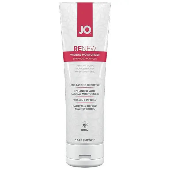 JO RENEW VAGINAL MOISTURIZER is een intensieve vochtinbrengende crème speciaal ontwikkeld voor vrouwen. De mix van moisturizers waaronder bisabolol, aloë vera en komkommervrucht zorgen voor een zachte formule voor dagelijks gebruik die is ontworpen om vaginale droogheid te verlichten. De rijke, zijdezachte crème biedt een infuusvrije applicatie voor gebruiksgemak dag en nacht.