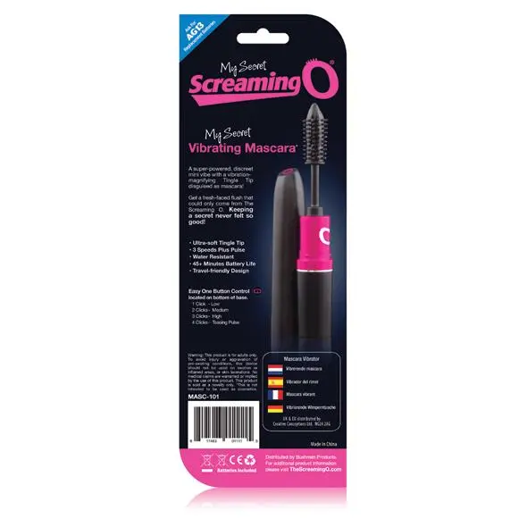 Vibrerende mascara – een chique en discrete superkrachtige, multifunctionele mini vibrator vermomd als mascara met een zacht en soepel gevoels vergrotende ’tintelende top’. Voeg stijlvolle stimulatie aan je make-up tas toe met je nieuwe favoriete accessoire, en krijg een blozend gezicht dat alleen van The Screaming O zou kunnen komen. Het bewaren van een geheim heeft nog nooit zo goed gevoeld.